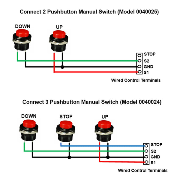 2) In Momentary mode: For example, connect 2 pushbutton manual switch (Model 0040025).
