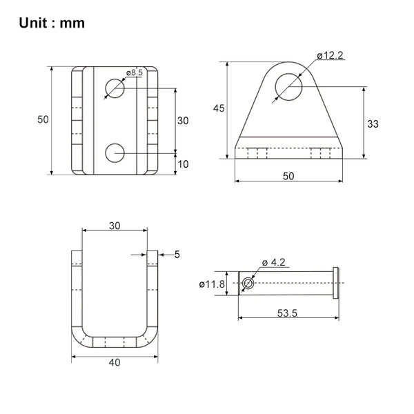 The diameter of the mounting holes for the front and rear connectors: 13mm [0.512 in]