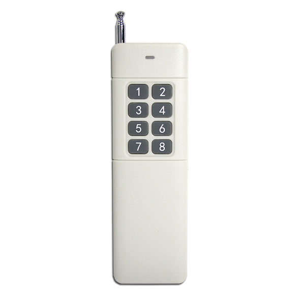 This is one-transmitter-many-receivers system with relay output. It including four S2U-AC-ANT3 receivers and a CV-8 transmitter. It may be used in all types of industry automation, agriculture, business, home, factory, house, farm, garage, vehicle, ship, aerial vehicle, etc. It can remote control different DC or AC equipment on land, water, and air, such as lights, doors, windows, lamps, sockets, locks, sirens, outlets, heaters, motors, fans, winches, curtains, blinds, linear actuators, electric solenoid valves, and security alarm systems. The applications are endless.