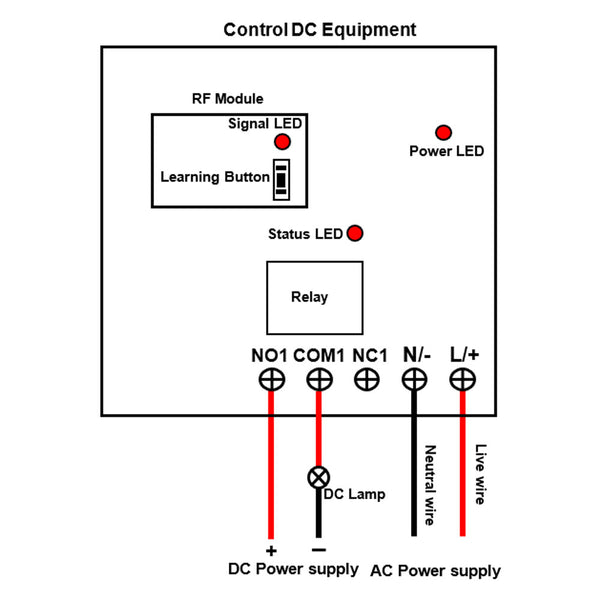 Relay Output: This receiver is dry relay output; it can be used to operate both DC and AC equipment. The output terminals are NO / NC (normally open / normally closed), serving as a switch. That means you should also connect a separate power supply to equipment.