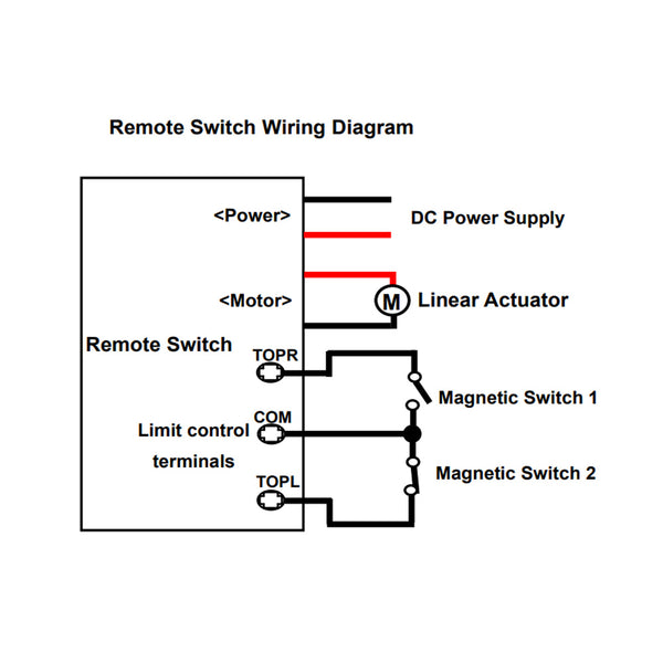 3. Connect two magnetic reed switches to the limit control terminals of the remote switch, please follow the connection diagram below for specific wiring.
