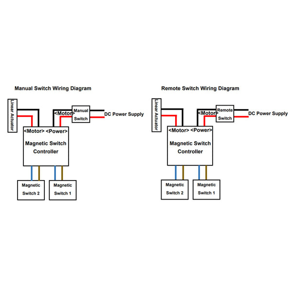 3) Connect two wires of linear actuator to two terminals <Motor> of the magnetic switch controller, and you can exchange these two wires to change the moving direction of linear actuator.